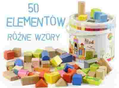 DREWNIANE KLOCKI RÓŻNE WZORY KOLORY 50 SZTUK 56439