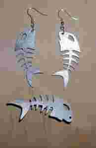 Drewniane kolczyki + broszka SREBRNE RYBKI