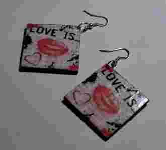 Drewniane kolczyki decoupage love reggae pacyfka