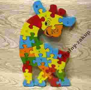 DREWNIANE PUZZLE,,ŻYRAFA,LITERKI I CYFERKI 26 EL.