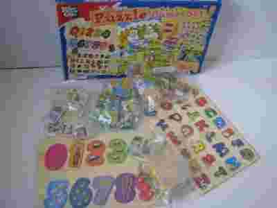 DREWNIANE Puzzle gry ALFABET memory DOMINO 9w1 HIT