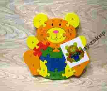 DREWNIANE PUZZLE,,MIŚ ,LITERKI I CYFERKI 26 EL.