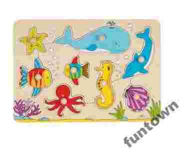 Drewniane puzzle z uchwytami PODWODNY ŚWIAT 8 el.