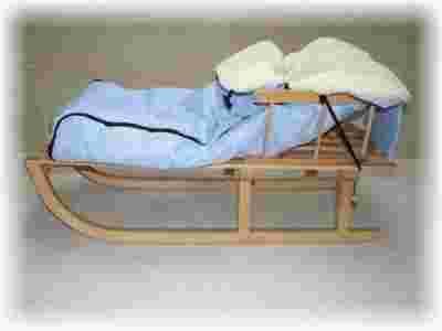 SANKI DREWNIANE KLASYCZNE Z OPARCIEM CIEPLUTKIM ŚPIWORKIEM I SZNURKIEM Z DREWNIANĄ RĄCZKĄ