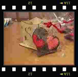 Serce zapakowane jest w przeźroczysty woreczek przewiązany czerwoną wstążką.