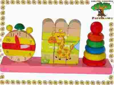 DREWNIANe zabawki KLOCKI 4STRONNE piramidka zegar