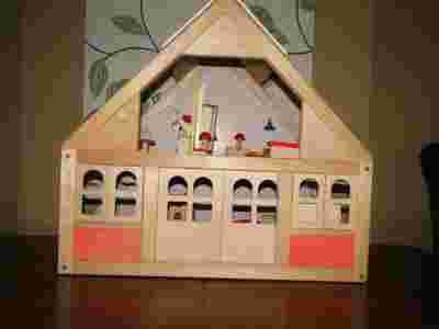DREWNIANY DOMEK DLA LALEK Z MEBLAMI ZOBACZ