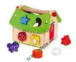 Drewniany domek sorter z klockami, nauka kształtów