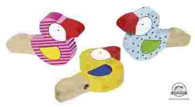 DREWNIANY GWIZDEK kolorowy ptaszek GOKI hit! 3+