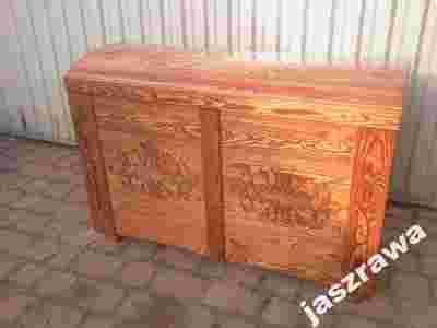 DREWNIANY KUFER SKRZYNIA NA POŚCIEL PŁÓTNO MALOWA
