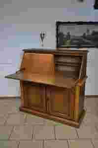 DREWNIANY SEKRETARZYK BIURKO SZAFKA PODŚWIETLANY