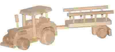 Drewniany Traktor ciągnik z przyczepą