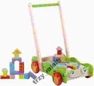 Drewniany wózek-pchacz z klockami, SUPER!