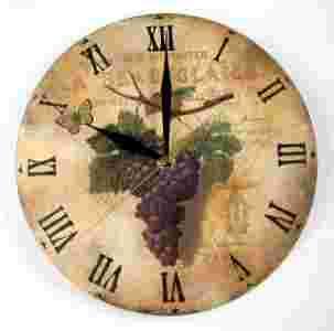 Drewniany zegar kuchenny RETRO winogrona owoce