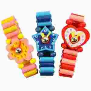 Drewniany ZEGAREK BIGJIGS kwiatek serce gwiazdka