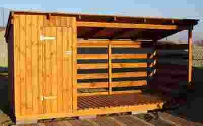 Drewutnia JOLA o wymiarach podstawy 1,2 na 4 m, dach jednospadowy. Część zabudowana służy do przechowywania narzędzi, część ażurowa służąca jako skład na drewno. Drewutnię można wykonać w innym układzie .