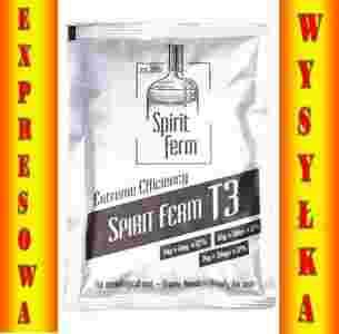 Super drożdże SpiritFerm T3 Szybkie aktywne drożdże gorzelnicze - do 17% alk. !!! SpiritFerm T3 to mieszanka aktywnych drożdży gorzelnianych, pożywki dla drożdży, witamin i mikroelementów niezbędnych do szybkiej fermentacji zacierów cukrowych. Zachowanie niskiej ceny przy dużej wydajności (nawet 17%) i maksymalnie krótkim czasie fermentacji sprawiają ze drożdże T3 są najczęściej stosowanymi drożdżami na polskim rynku. 5kg cukru daje 13% w 1 dzień 6kg cukru daje 15% w 2 dni 7kg cukru daje 17% w 3 dni.