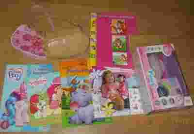 Przedmiotem aukcji jest zabawka - drobne agd, zestaw książeczek oraz 2 torebki