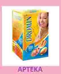 Zalecana dzienna dawka preparatu Dromin (12 tabletek) realizuje w ok. 40% zapotrzebowanie na magnez, wapń, cynk i fosfor oraz ok. 70% na tiaminę (witaminę B1).