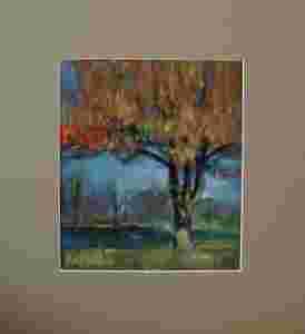 DRZEWO ABSTRAKCJA - pejzaż - akryl,pastel 36x39cm
