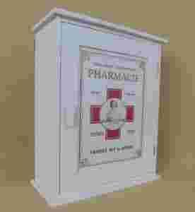 Pudełko na leki w kolorze białym, wykonane z drewna.