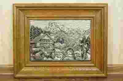 DUŻA CYNOWA PŁASKORZEŹBA DREWNIANA RAMA !
