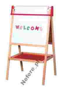 Rozkładana dwustronna drewniana tablica w formie sztalugi świetnie wygląda jako element wystroju dziecięcego pokoju.