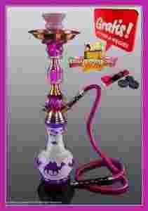 Chyba najpiękniejsza duża fajka wodna w tej klasie cenowej, pięknie zdobiona charakteryzuje się bardzo zwartą i solidną konstrukcją. Dostępna w ciekawej kolorystyce z orientalnymi motywami pakowana w ozdobny kartonik. Wąż fajki oplatany jest specjalnym obszyciem co gwarantuje niezwykłą wytrzymałość oraz elastyczność. Wysokość fajki aż 46 cm. długość węża 120 cm.