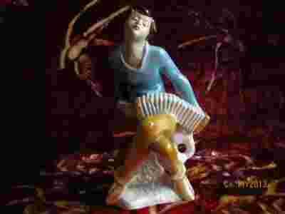 DUŻA FIGURA DZIEWCZYNA z HARMONIĄ STEATYT KATOWICE