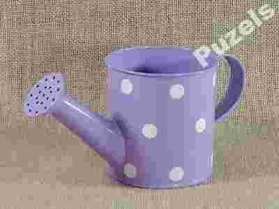 DUŻA FIOLETOWA OZDOBNA BLASZANA KONEWKA KROPKA