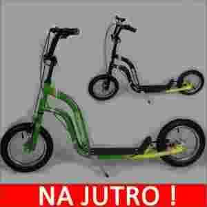 Koła pompowane 12" (30cm). Szeroka podstawa z antypoślizgową strukturą. dł. 30cm, szer. 11cm. Wysokość kierownicy regulowana 75-90 cm. Długość hulajnogi 130cm. Maksymalne obciążenie 64kg. Waga hulajnogi 7kg. Widelec typu BMX. Obręcze kół: stal chromowana. Hamulce zaciskowe: przedni i tylni. Praktyczna składana nóżka. Instrukcja montażu w języku polskim. Dwa kolory do wyboru! Po zalicytowaniu napisz koniecznie który wybrałeś, w przypadku braku takiej informacji wysyłka hulajnogi opóźni się do czasu uzyskania informacji lub zostanie wysłany kolor losowy.