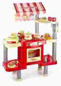 Zabawka - stragan wykonana jest z wysokiej jakości plastiku bezpiecznego dla naszych pociech, a atrakcyjne, kolorowe barwy z pewnością przyciągną wzrok i zachęcą do zabawy w małych kucharzy, sprzedawców lub klientów. Kuchnia posiada certyfikat CE/GS.