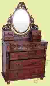 Duża, neobarokowa KOMODA z lustrem - MAHOŃ