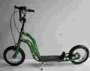 Bardzo solidna, duża hulajnoga z dużymi pompowanymi kołami - 12". 2 hamulce ręczne, Duży antypoślizgowy podest, Nóżka. Regulacja wysokości kierownicy. Hulajnoga jest przeznaczona dla dzieci, maksymalna waga użytkownika 80 kg.