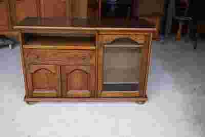 Stan szafki widoczny na zdjęciach, konstrukcja stabilna. Niewielkie ślady użytkowania, blat 1 części podnosi się.
