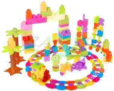 Klocki posiadają duże, łatwe do łączenia elementy, z których z łatwością można zbudować tory po których jeździ kolejka, całość dodatkowo można udekorować konstrukcjami z wielobarwnych klocków.