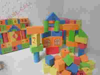 Przedmiotem aukcji są klocki piankowe w wielu różnych kształtach oraz kolorach.