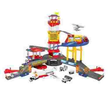 W zestawie samolot, helikopter, 3 ciężarówki, straż pożarna, mata lotniska, lotnisko