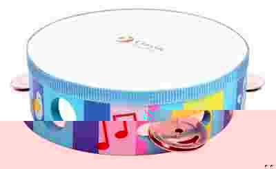 Tamburyn posiada cztery podwójne talerzyki oraz wzmocnioną mebranę. Dodatkowo w drewnianej ramie znajduje się specjalny otwór, dzięki któremu dziecko może pewnie trzymać instrument w ręku.