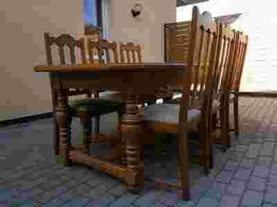 DUŻY DĘBOWY STÓŁ Z 6 KRZESŁAMI.