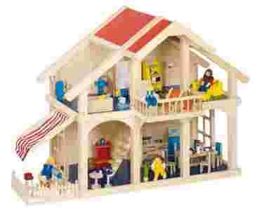 Duży drewniany domek dla lalek 2-piętrowy GOKI