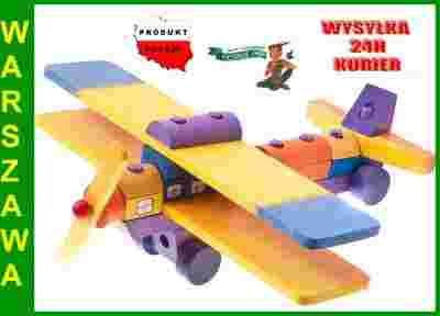 DUŻY KOLOROWY DREWNIANY SAMOLOT UKŁADANKA +BONUS