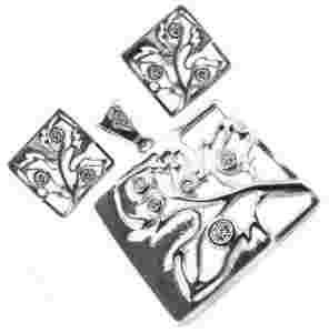 DUŻY KOMPLET KWADRATY LIŚĆ CYRKONIE SREBRO 925