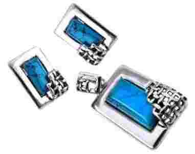 DUŻY KOMPLET PROSTOKĄTY Z TURKUSAMI SREBRO 925