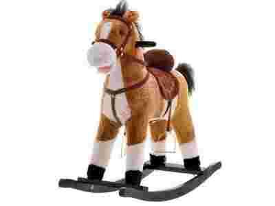Duży konik KOŃ na biegunach merda ogonem jasnobrąz