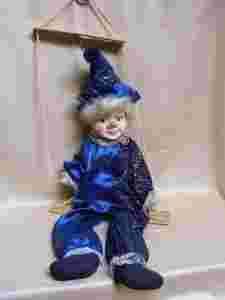 Duży krasnal na huśtawce - lalka wisząca