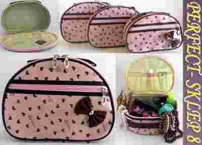 Duży kuferek na biżuterię kosmetyczka z lusterkiem