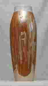 Wazon malowany w efektowne plamy różnych odcieni koloru pomarańczowego, tzw. benzynka, opalizowany. Wzornictwo i wykonanie lata 60-te XX wieku. Ciekawa nie tylko malatura w typie picassowskim, ale również kształt i forma flakonu.