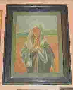 Duży pastel w starej ramie..OKAZJA!! Matka Boska lub inna święta. Pastel na papierze w starych ramach.Kopia obrazu ze znanej serii " Pory roku" malarza międzywojennego Stachiewicza. Obraz został zakupiony jako oryginał i po naszej ekspertyzie klient zrezygnował z umieszczenia go w swojej kolekcji. Co nie zmienia faktu, że kopia i postarzenie wykonane starannie .Wymiary 62 x 83 cm.