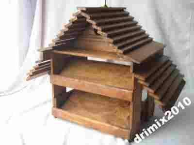 Dekoracyjny duży karmnik dla ptaków z bukowych listewek. Zabezpieczony drewnochronem z hakiem do zawieszenia ( także stabilna podstawa do postawienia na podłożu - np.pniu, beczce balkonie, gzymsie itp)